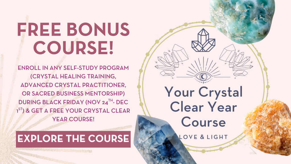 Join my Sacred Business Mentorship today for only $197 with self-study pricing + a FREE ‘Your Crystal Clear Year’ Bonus Course!